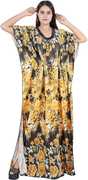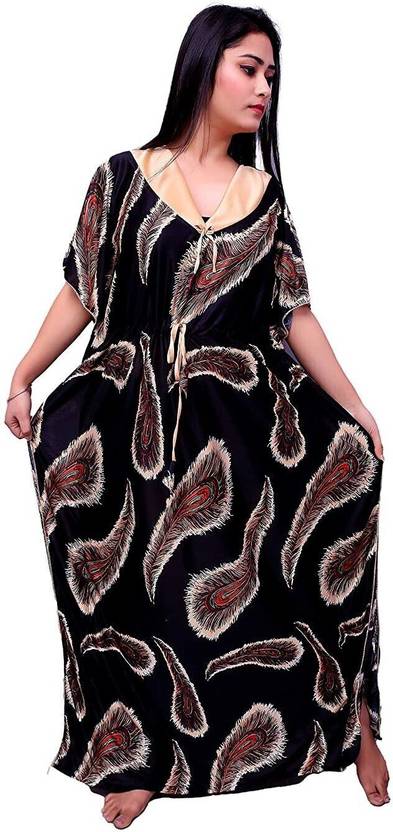 Rangmor Fashions Designs Stylish Kaftan Nighty for the trendy women,Ladies & Girls. Tailored With perfection this classic nightwear is designed to provide maximum comfort and warmth while you get a peaceful night’s rest. This Kaftan is perfect for all occasions, be it for personal use or a gift to someone special. Rangmor’s kaftan nighty is fashioned from fine-quality 28 Gaz Satin fabric that is wrinkle free, lightweight and durable. The stylish fabric makes for a fancy choice with its glossy appearance that is coupled with floral printed design on the surface for a fashionable yet comfortable night-time attire. The drawstring waist that completes the over-all look can be adjusted to alter the waist size according to the requirement for a fit and sleek appearance. Size-Free Adjustable Fit For Bust 32 - 38 inches Because It Has Draw String.Length: Full Approx-54 Inches .