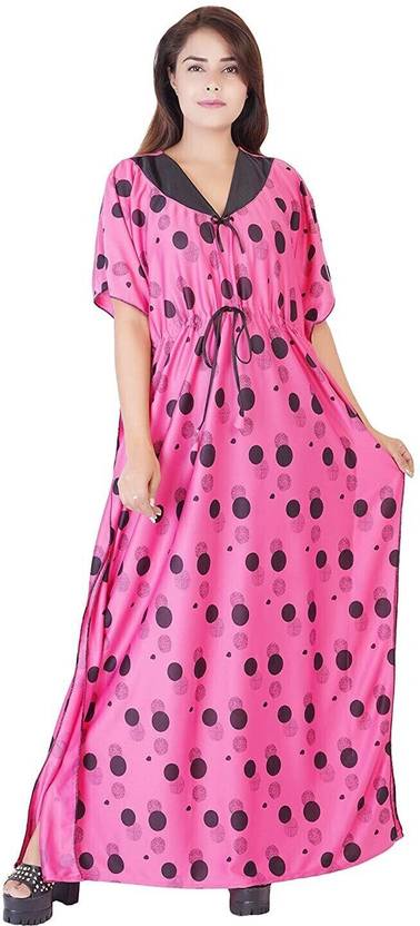 Rangmor Fashions Designs Stylish Kaftan Nighty for the trendy women,Ladies & Girls. Tailored With perfection this classic nightwear is designed to provide maximum comfort and warmth while you get a peaceful night’s rest. This Kaftan is perfect for all occasions, be it for personal use or a gift to someone special. Rangmor’s kaftan nighty is fashioned from fine-quality 28 Gaz Satin fabric that is wrinkle free, lightweight and durable. The stylish fabric makes for a fancy choice with its glossy appearance that is coupled with floral printed design on the surface for a fashionable yet comfortable night-time attire. The drawstring waist that completes the over-all look can be adjusted to alter the waist size according to the requirement for a fit and sleek appearance. Size-Free Adjustable Fit For Bust 32 - 38 inches Because It Has Draw String.Length: Full Approx-54 Inches .