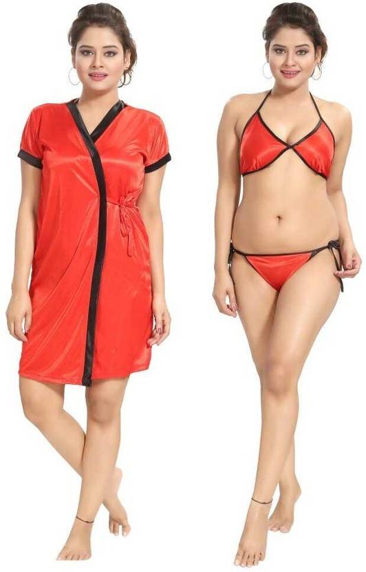 1 Pcs Robe Short Length, 1 Pcs Bra, 1 Pcs Panty