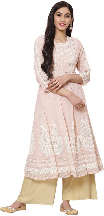 RANGRITI Women Printed Anarkali Kurta (Pink)