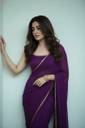 Solid saree with contrast border, Gold details, Zari border, Night Party, Occasional Sari/Party Sari