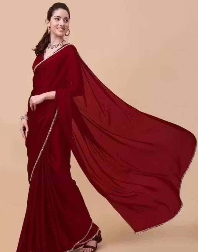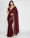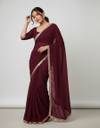 Solid saree with contrast border, Gold details, Zari border, Night Party, Occasional Sari/Party Sari