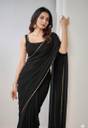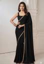 Solid saree with contrast border, Gold details, Zari border, Night Party, Occasional Sari/Party Sari
