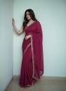Solid saree with contrast border, Gold details, Zari border, Night Party, Occasional Sari/Party Sari