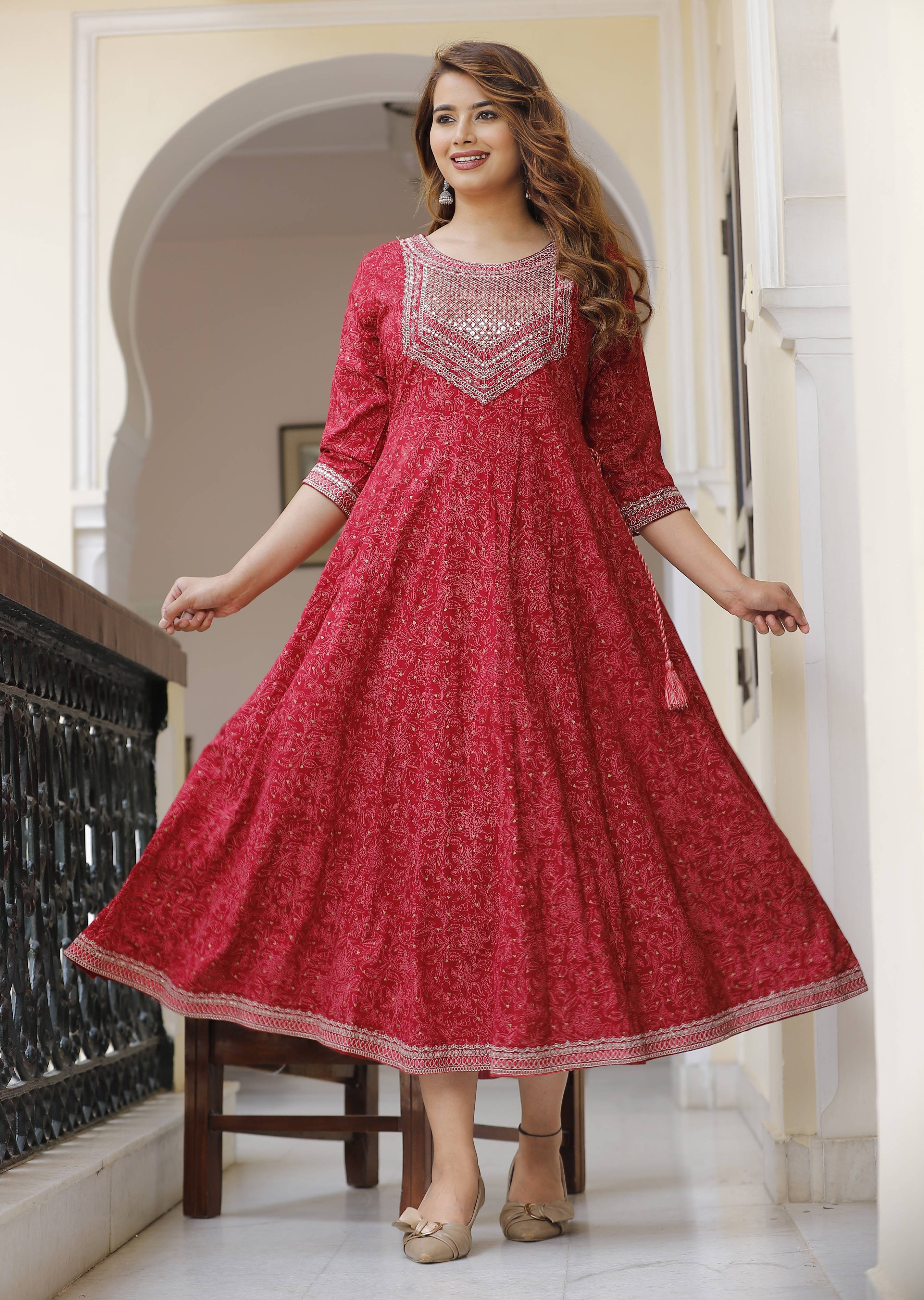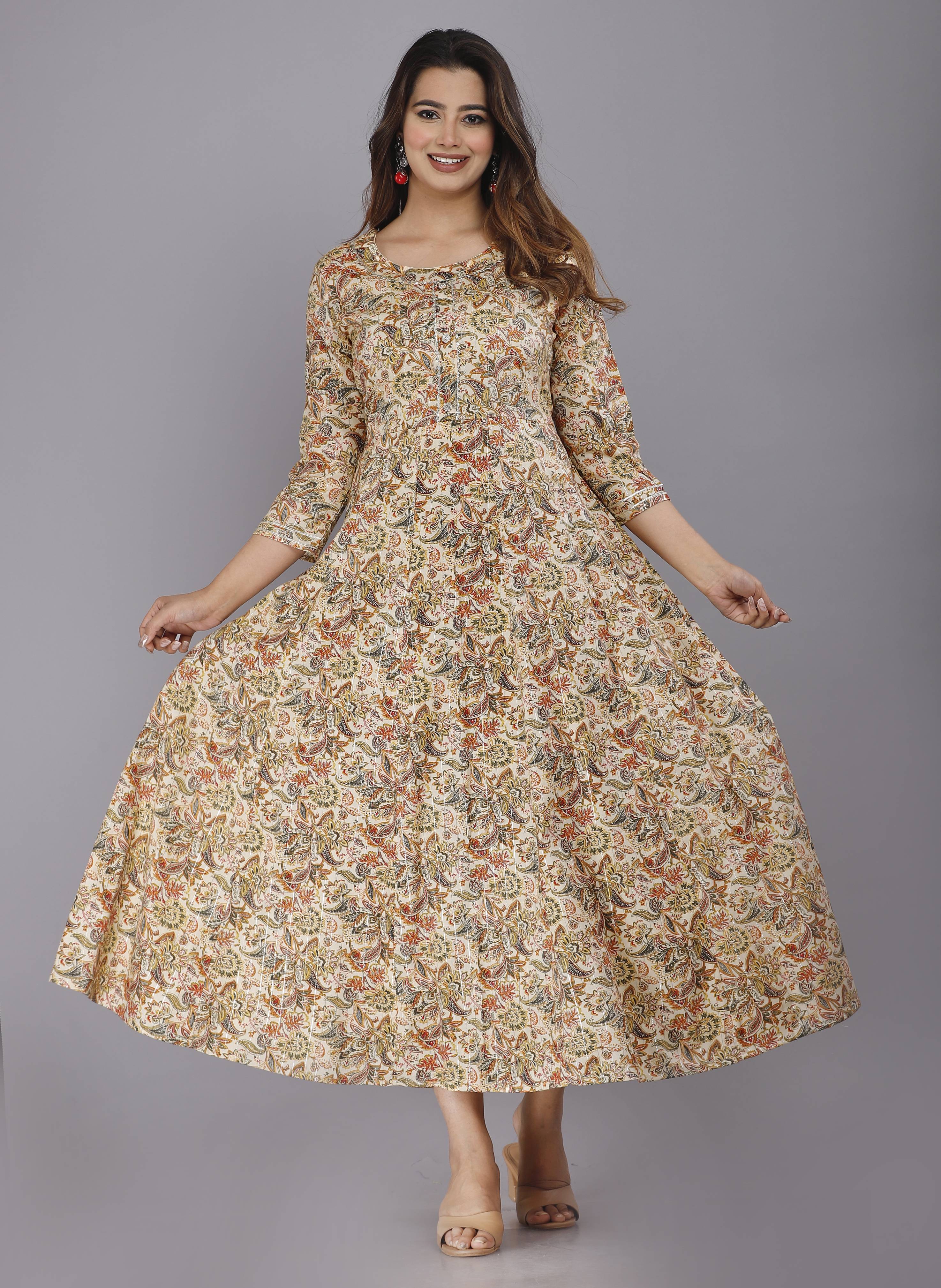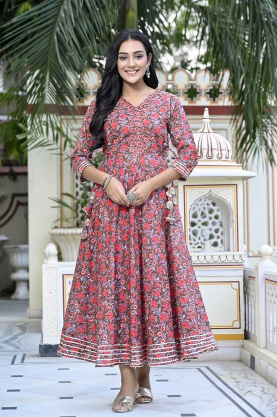 Pure Cotton Stitched Anarkali Gown (Grey)