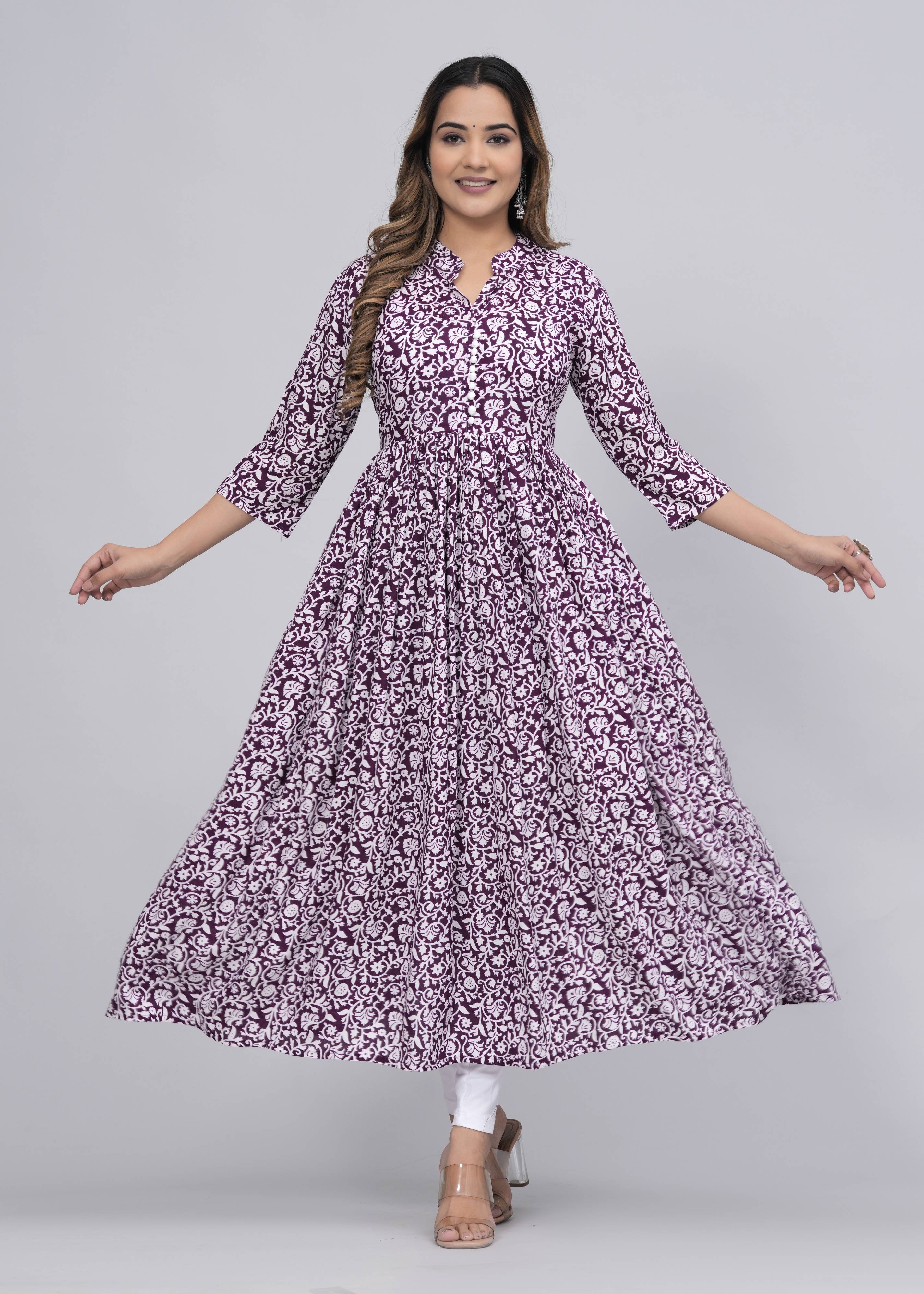 Floral Print Viscose Rayon Stitched Anarkali Gown (Beige)