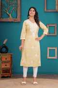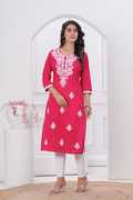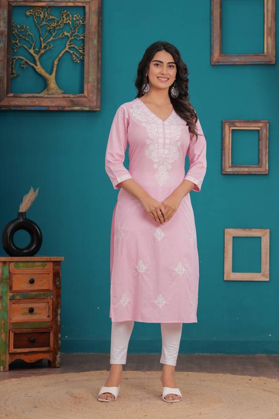 Rani Prints Women Embroidered Straight Kurta (Pink)