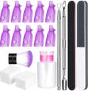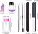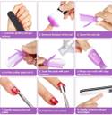 How to use 1. Grinding nail polish gel seal surface by coarse sand file, clean by nail brushes. 2. Wrapped with nail remover pads with acetone,tear and wrap your fingertips in the squares. 3. Clipping the wrapped nails with nail clips ( fits all size), wait for 18-30 minutes. 4. Scratching off nail plate residue gels with cuticle pusher after taking out clips. 5. Polishing nail beds by buffer block. Package Included 10 x nail clips 1 bag nail remover pads 1 x triangle cuticle pusher 1 x nail coarse sand file 1 x nail buffer block 1 x handle grip nail brush 1 x stainless steel pusher 1 x nail polish remover bottle
