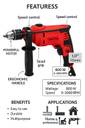 RanPra 100% COPPER ARMATURE 13MM HAMMER DRILL MACHINE WITH SAFETY GLOVES Pistol Grip Drill (13 mm Chuck Size)