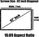 RANWAR 92 inch Diagonal Projection Screen 16:9 HD Foldable Anti-Crease Portable Projector Movies Screen Size 7 Feet (W) x 4.5 Feet (H) Projector Screen (Width 213.36 cm x 152.4 cm Height)
