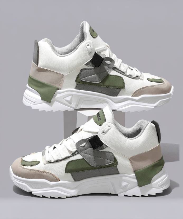 RapidBox Color Block Sneakers For Men (White, Olive , 9)