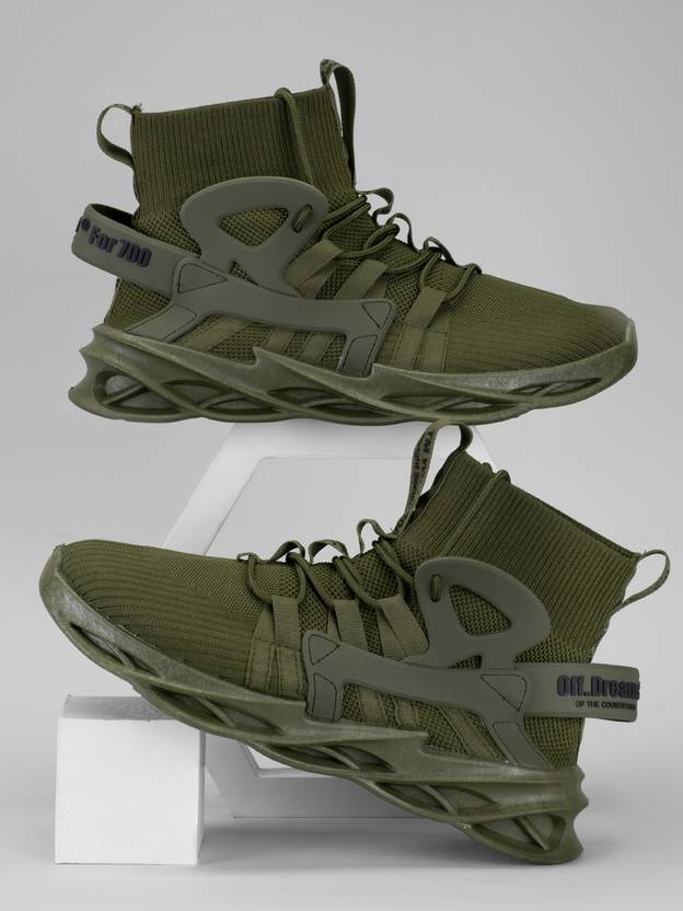 RapidBox High Tops Sneakers For Men (Olive, Black , 10)