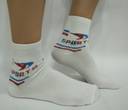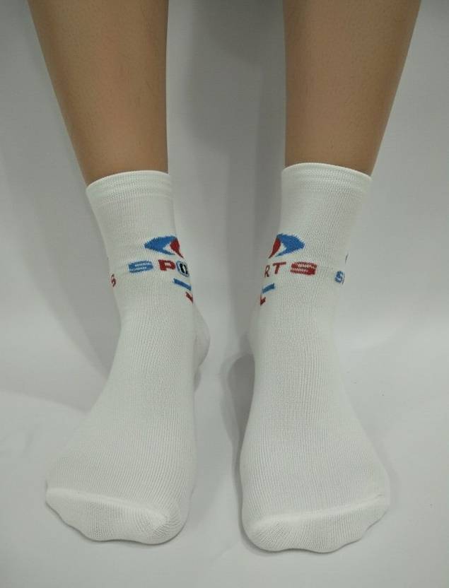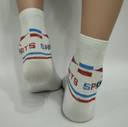 These white ankle-length sports socks are crafted for comfort with a secure ribbed cuff and soft, breathable fabric. The athletic design features bold "SPORT" lettering accented by dynamic red and blue stripes, making them an ideal choice for active or casual daily wear.