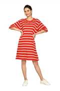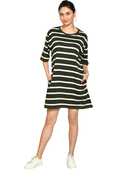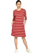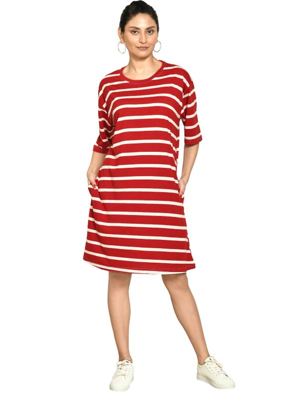 Introducing our chic and trendy Cotton Blend Striped Printed Short Sleeve Round Neck Dress for Women. Combining classic stripes with contemporary flair, this dress is a versatile and stylish addition to your wardrobe. From parties to formal occasions, and even the office, dresses for women are a wardrobe staple. They're perfect for casual wear too, striking the ideal balance between looking put together and effortlessly stylish.Unlock the allure of exceptional fashion with our exotic collection. Explore these dresses which includes the idea of maxi dresses, stylish party wear, mini dresses, western wear, and printed dresses. Whether you prefer women's western dresses, party attire, light dresses, or short sleeves, we have you covered.Be the center of attention at any event with this dress. Its soft fabric and stunning design make it the perfect gift for your wife, girlfriend, sister, or daughter on birthdays, Mother’s Day, Valentine’s Day, or Christmas. This midi-length dress is this season's must-have, ensuring all eyes are on you wherever you go.