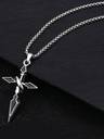 RAPPERSSHOP Cross Pendant with Stainless Steel Box Chain Sterling Silver, Rhodium Stainless Steel Pendant Set