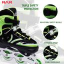 RAR SPORTS PVC 4 Wheels Inline Adjustable Skates Shoes for Boys & Girls (7 to 15 Years) In-line Skates - Size 6 UK (Green)