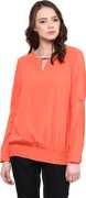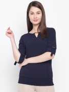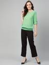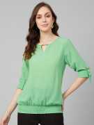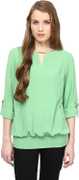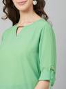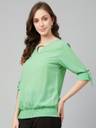 RARE Casual Roll-up Sleeve Solid Women Green Top