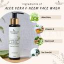 This Face Wash is a natural blend of neem and Aloe vera oil. It helps prevent acne by deep cleaning impurities, fighting bacteria, and controlling excess oil secretion. Its gentle bioactive powered gel formulation refreshes your skin and calms redness and irritation. Aloe vera and Neem Leaf Extract are potent natural antimicrobials that help prevent acne-causing bacteria from infecting skin pores. Aloe Vera tones, hydrates and softens the skin. In a nutshell; this is a face wash formulated to tackle acne and related issues effectively. Dermatologically tested and pH balanced, it takes gentle care of your skin while making it look healthy and glowing. It is absolutely safe since it contains no harmful chemicals.