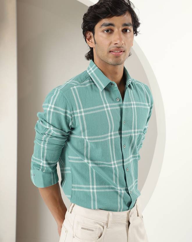 RARE RABBIT Men Checkered Casual Green Shirt