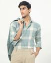 RARE RABBIT Men Checkered Casual Light Blue Shirt