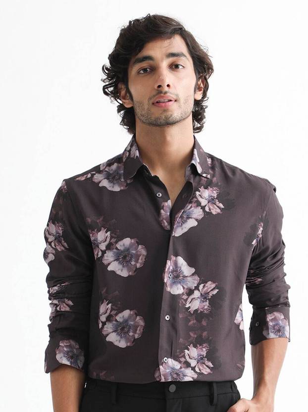 RARE RABBIT Men Printed Casual Brown Shirt