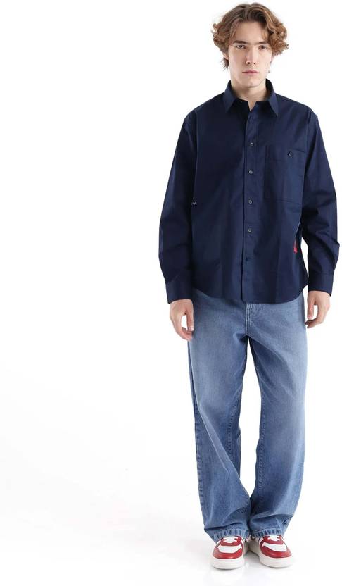 RARE RABBIT Men Solid Casual Dark Blue Shirt