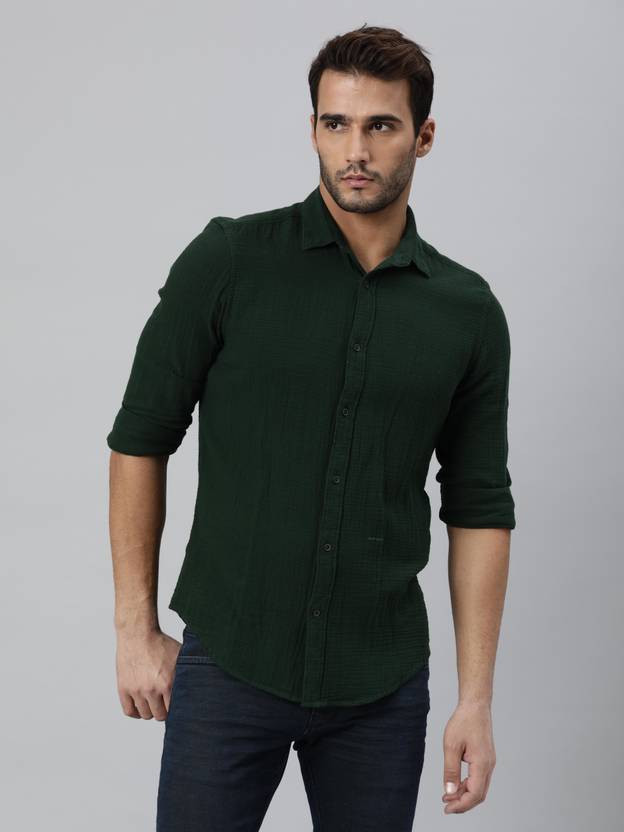 RARE RABBIT Men Solid Casual Dark Green Shirt