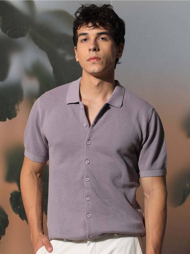 Men Slim Fit Solid Spread Collar Casual Shirt