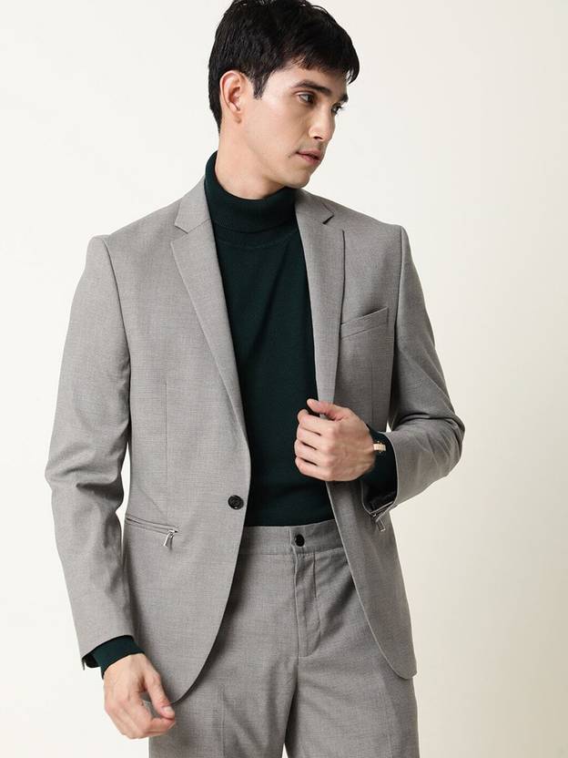 SLIM FIT CAVALARY TWILL SUIT BLAZER The RARE RABBIT Men's Suits provide a timeless look with a modern flair. Made from a blended fabric, these suits feature a lapel neck, full sleeves, and button closure for a tailored fit. Perfect for any formal or professional occasion.