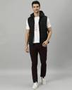 -Modern day outer wear sleeveless quilted hood de attachable Polyfil jacket.-Nylon Jacket, Perfect fit and comfort.-Metal Branding at chest-Best worn under T-shirts and Shirts-High neck collar with zipper design with removable hood design.-Quilted body design
