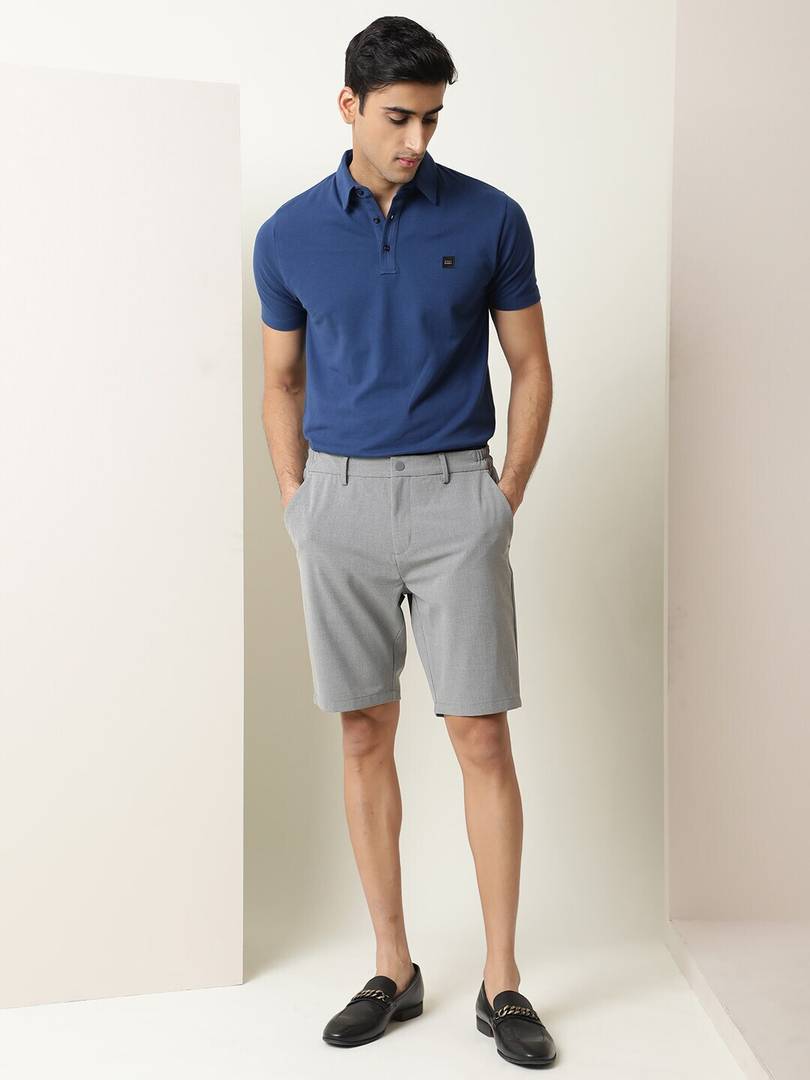 RARE RABBIT Solid Men Polo Neck Blue T-Shirt