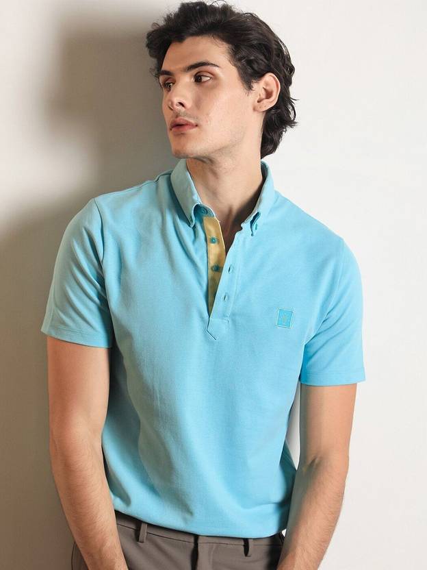 RARE RABBIT Solid Men Polo Neck Blue T-Shirt