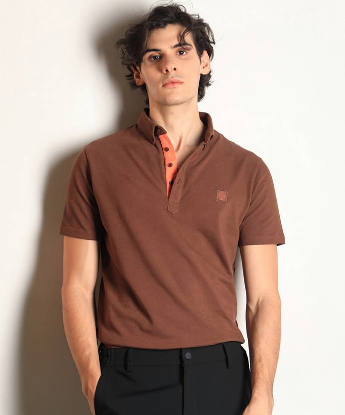 RARE RABBIT Solid Men Polo Neck Brown T-Shirt
