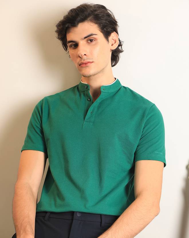 RARE RABBIT Solid Men Polo Neck Green T-Shirt