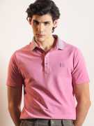 RARE RABBIT Solid Men Polo Neck Pink T-Shirt