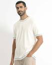 Men Solid Round Neck Cotton Blend White, Blue T-Shirt