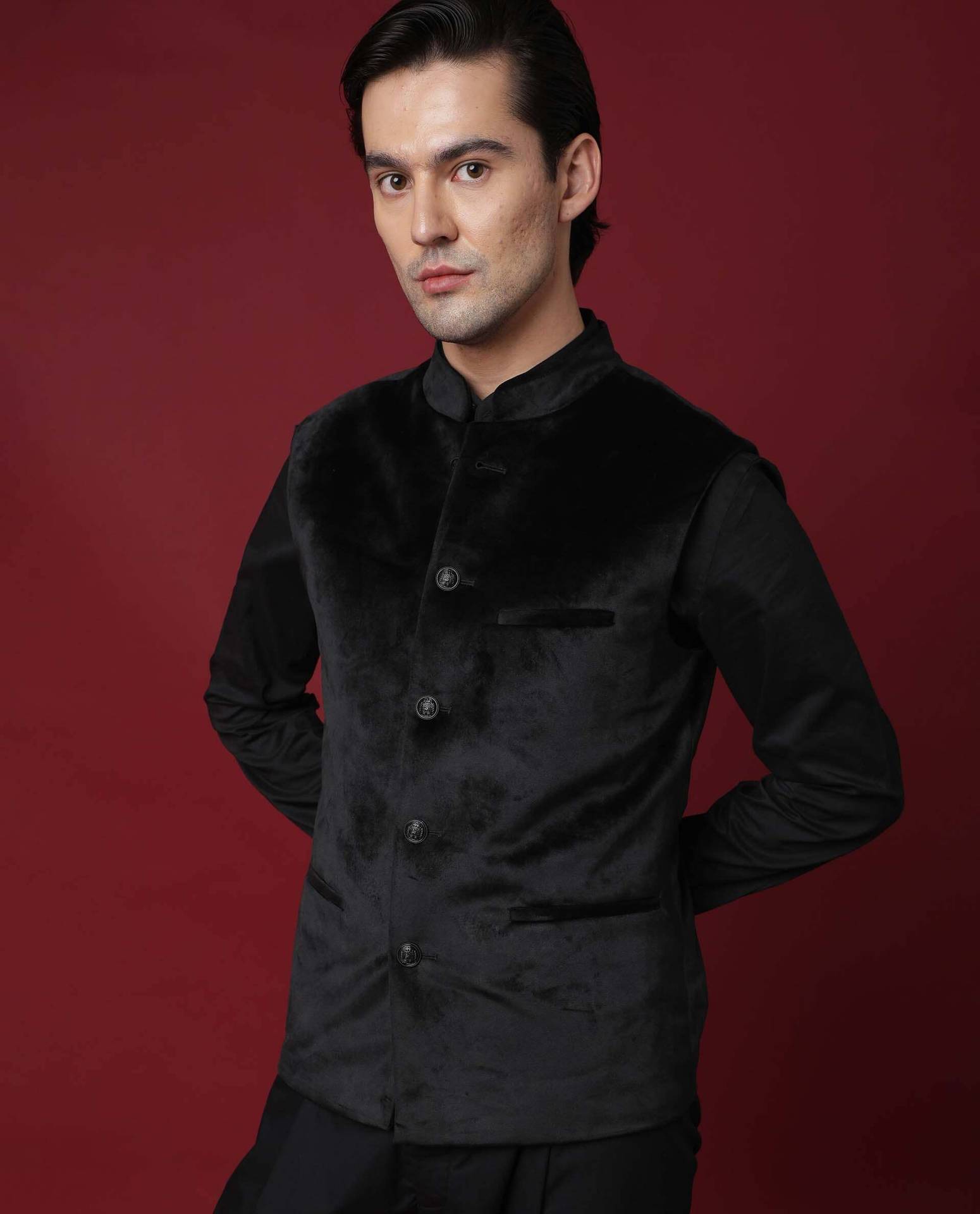 MEN'S VELVET BLAZER This full-sleeve blazer is crafted from luxurious fabric with a slim fit, and lapel neck. Perfect for a formal occasion or an evening event, this blazer is the ideal choice for the modern gentleman.