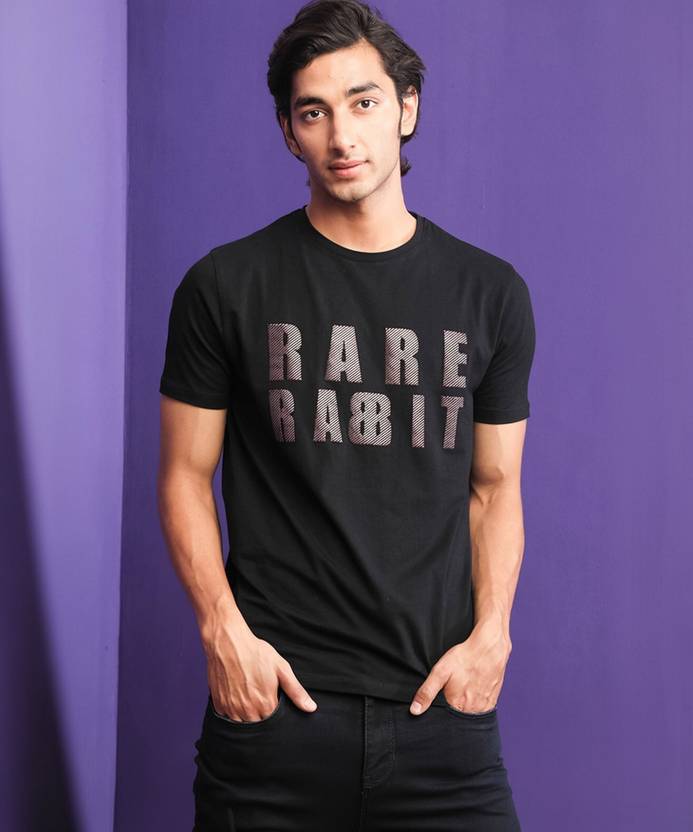 RARE RABBIT Typography Men Round Neck Black T-Shirt