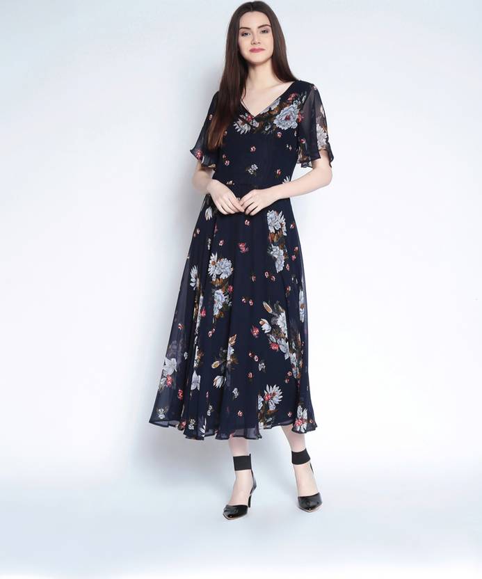 RARE Women Fit and Flare Blue Midi/Calf Length Dress