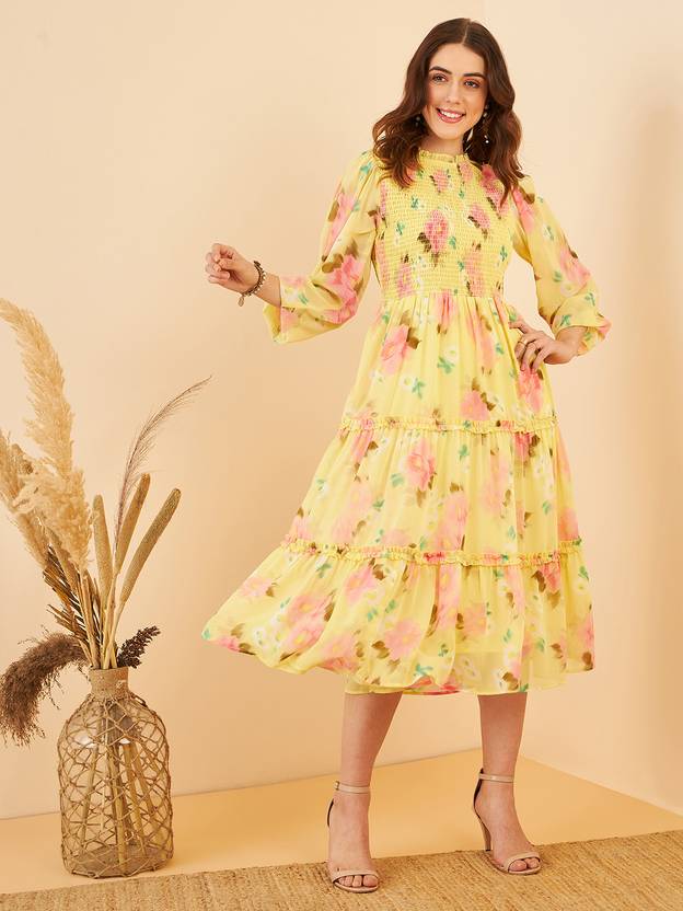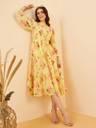 Women Fit and Flare Yellow Midi/Calf Length Dress