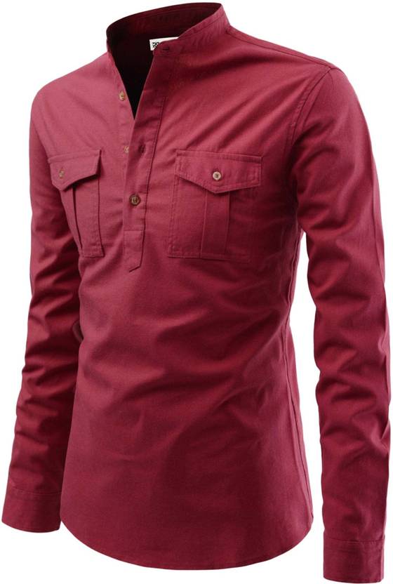 RAREMARK Men Solid Pure Cotton A-line Kurta (Maroon)