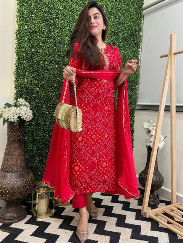 RAS RANI present this beautiful Bandhni Embroidered kurta salwar with dupatta which is made high quality fabric with beautiful work all over. This kurta set has been designed keeping in mind the latest trends in contemporary casual fashion. The Kurta set combines Western with the fashion of today and makes you stand out among others when you adorn it.