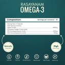 Rasayanam’s Omega-3 with DHA and EPA is a 100% natural, vegetarian, plant-based supplement sourced from pure marine algae instead of fish. With a high EPA:DHA ratio of 450:150, it delivers all the essential benefits of Omega-3 without the fishy aftertaste, burps, or harmful contaminants like heavy metals. Unlike traditional fish oil capsule, this omega 3 fatty acid supplements is clean and sustainable formula is highly bioavailable and easy to digest. As fish oil does, these omega 3 capsules vegetarian also supports heart health, enhances brain function, improves joint mobility, and aids muscle recovery. These omega3 vegetarian capsule are sustainably sourced and carefully processed, this Omega-3 supplement offers a pure and effective solution for maintaining overall well-being. Best omega 3 capsules, free from artificial additives, heavy metals, and preservatives, ensuring a clean and natural source of essential fatty acids. This vegan omega 3 EPA DHA is ideal for those on plant-based diets, athletes, and wellness-conscious individuals, this omega 3 with DHA and EPA helps reduce inflammation, promote healthy skin, and support eye health. Regular use of these algal oil omega 3 supplement may enhance mood, cognitive performance, and cardiovascular function, making this fish oil omega 3 an excellent daily health companion.