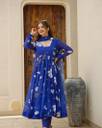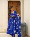 Printed, Floral Print Georgette Stitched Anarkali Gown (Blue)