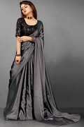 Have this beautiful Crep Sattin Silk with Sequence Embroidered Blouse piece and clothing with the right pattern, styles, designs, cuts, lengths and colours that match your style. This can be worn on various occasions such as parties, weddings, business meetings, festivals, lunches, dinners and so on. The draping styles and texture of materials used can change its overall look. This is made of different materials and many of others sarees are designed with various embroidery styles. At saris are also available in various types such as georgette, chiffon, silk, crepe, cotton, bandhani, designer, bollywood, wedding and bridal. The Indian garment that always remains in vogue is the saree Shop online at storefront for a huge range of Sarees.Choose sarees based on the occasion. Maintain the classy, smart yet stylish look at work with our range of sarees in crepes, silks and evergreen prints. Sarees in sattin, net and georgette can add a little sophistication for lighter evening