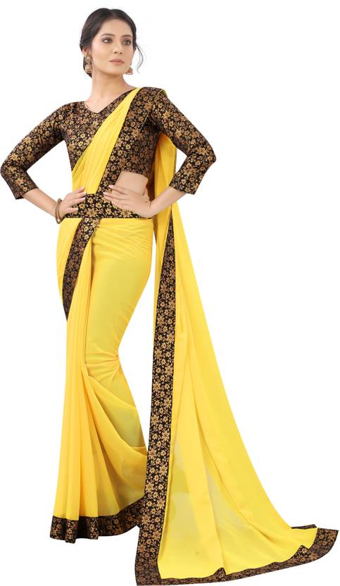 Maruti Creation Self Design Bollywood Georgette Saree (Yellow)
