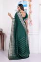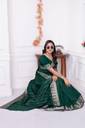 Add timeless elegance to your ethnic collection with this beautiful Mysore Crepe Silk Saree, designed for women who appreciate traditional charm with a graceful twist. This saree features a serene Green & Dark Green base adorned with a vibrant red border and pallu, intricately woven with gold zari motifs that enhance its regal appeal. The rich contrast and delicate checkered texture make it a perfect choice for festive and ceremonial occasions. Crafted from premium-quality Mysore crepe silk, this saree offers a soft, smooth texture with a lightweight drape that flows effortlessly, ensuring all-day comfort. It comes with an unstitched matching blouse piece in coordinating red, featuring complementary zari work to complete the elegant look. Whether it's a wedding, cultural event, or festive gathering, this saree delivers sophistication and poise with every wear. Easy to style and maintain, this Mysore silk saree is a versatile addition to any wardrobe. Pair it with statement jewelry and heels for a complete traditional ensemble that exudes class and grace.