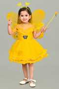 This beautiful costume set includes 1 frock, 1 stick (wand), 1 pair of wings, and 1 butterfly-themed hairband, giving your child a complete fairy or angelic look with minimal effort. The frock features a fluffy layered skirt with ruffled sleeves and charming butterfly detailing at the waist, making it a delightful ensemble for little girls who love to twirl and sparkle.