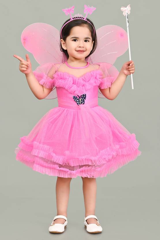 • Adorable Fairy Design – Features layered frills, butterfly detailing, and vibrant colors for a magical look. • Soft Net Fabric – Lightweight, breathable, and gentle on delicate skin for all-day comfort. • Comfortable Fit – Designed for easy wear and movement, perfect for active kids. • Ideal for Multiple Occasions – Great for birthday parties, school events, photo shoots, and dress-up play. • Available in 5 Beautiful Colors – Choose from yellow, light pink, dark pink, white, and red. • Complete Costume Set – Includes 1 frock, 1 stick (wand), 1 pair of wings, and 1 matching hairband.