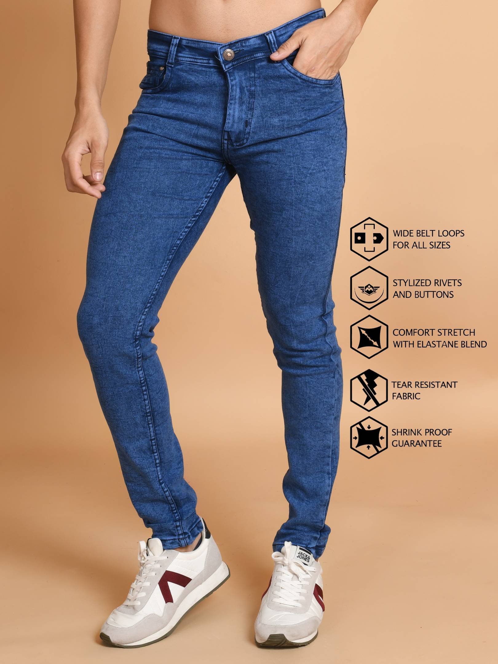 RASSO Regular Fit Men's Jeans - Crafted from cotton to cater to your comfort demands, this pair of Mid rise jeans from RASSO offers you a fashionable look effortlessly.